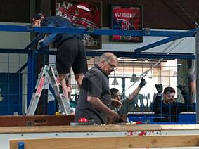 Wie heißt es so schön, nach der Saison ist vor der Saison! Aus diesem Grund haben auch unmittelbar nach dem letzten öffentlichen Lauf, den letzten Trainings der Eishockey-Mannschaften die in der Spendenaktion angekündigten Arbeiten begonnen.