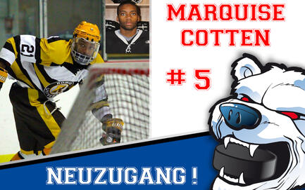 Mit Marquise Cotten haben die Eisbären auch die zweite Kontingentstelle besetzt. Der 24-jährige Stürmer kam mit 5 Jahren zum Eishockey und durchlief verschiedene College Mannschaften, zuletzt war er für die Rowan University in der ACHA III aktiv.